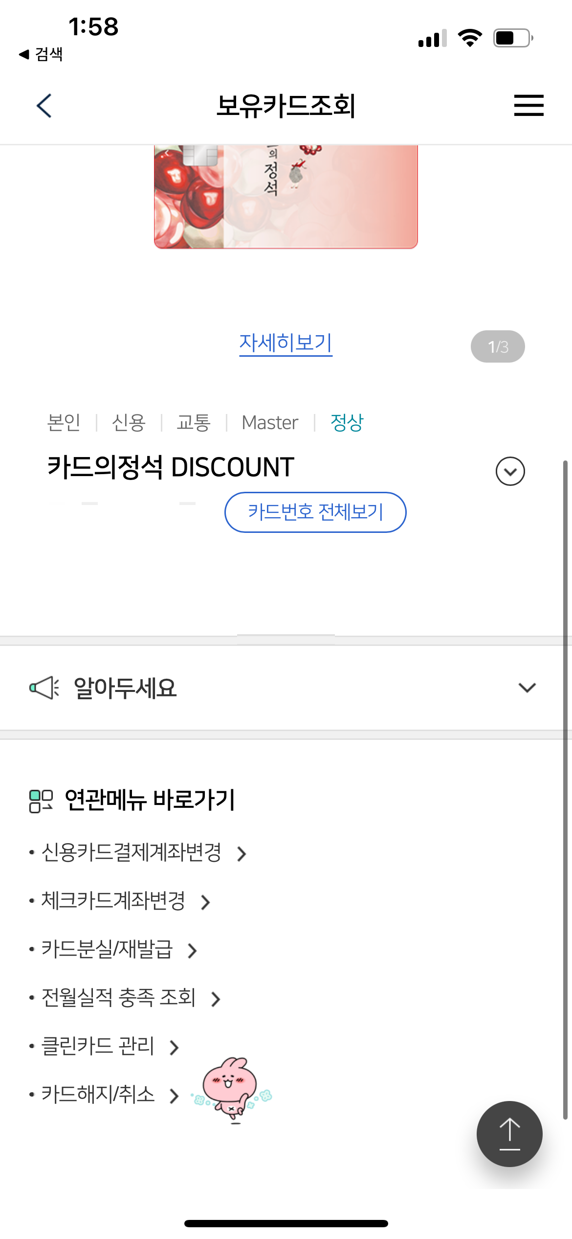 5. 카드 아래로 내리면 맨 마지막에 카드 해지/취소가 보입니다.